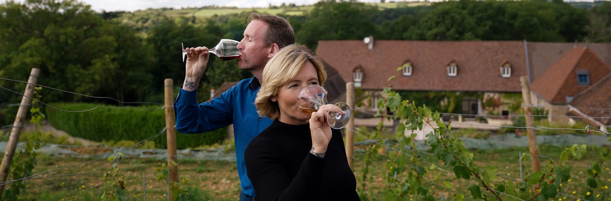 Stephen and Lilly tasting in the Domaine de Cromey vineyard, 'Clos du Chateau.'