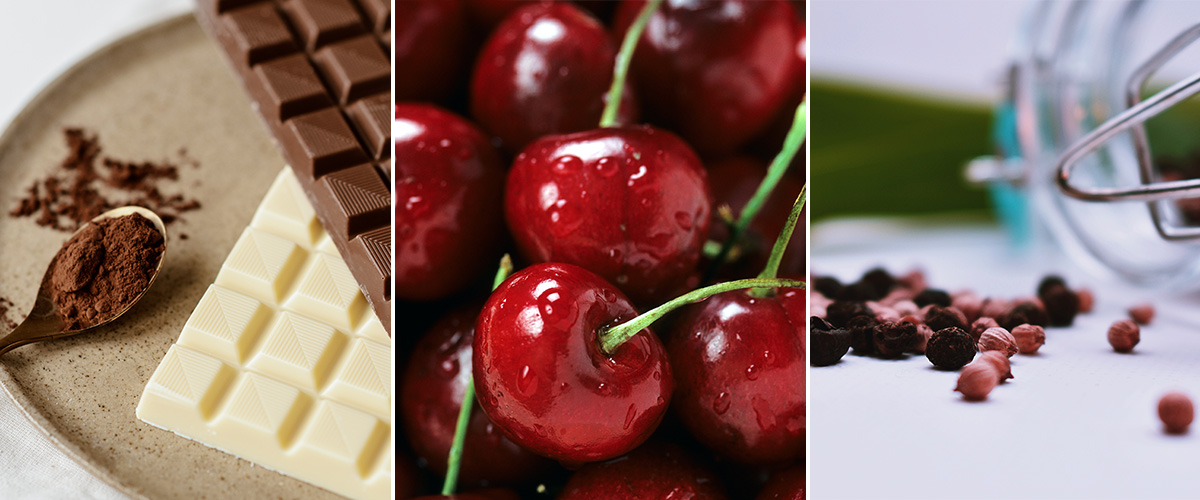 In red wines, if you get a dark chocolate or raw cocoa aroma, it may be coming from Pyrazines in the wine, which can sometimes be off-putting but can also be valued in aged wines, where they develop into sweeter, more cherry-like aromas. Peppery red wines may contain Rotundone, a compound found in peppercorns