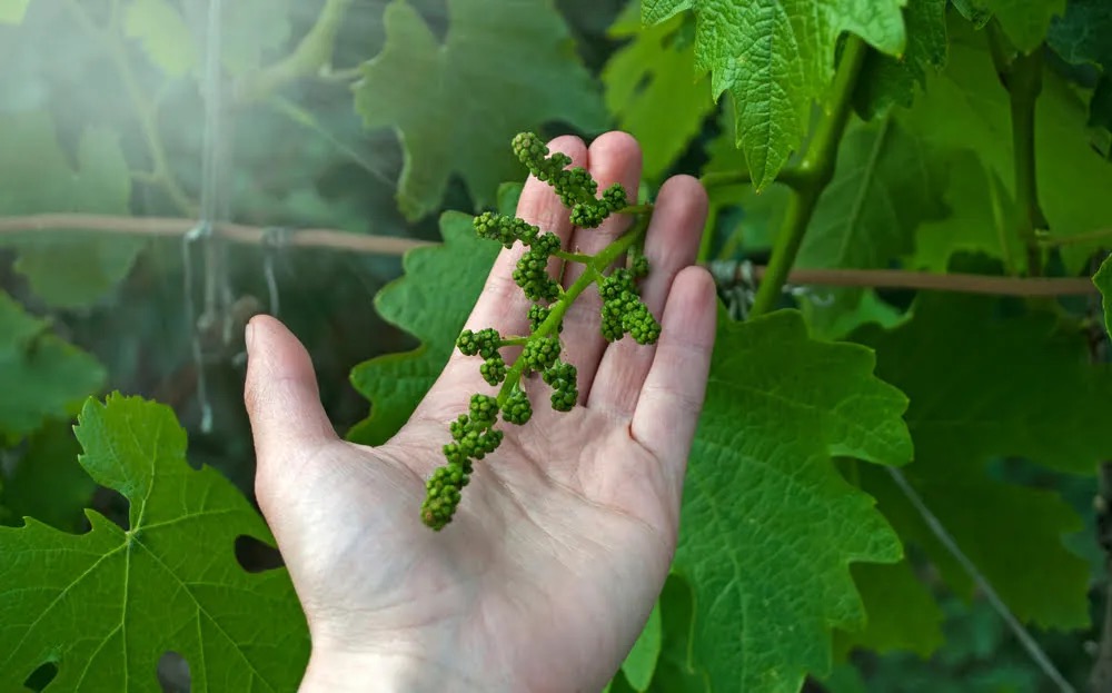 When grown outside, wine grape flowers are naturally pollinated by insects and the wind. However, if your grapevines are in a greenhouse, pollination could suffer. This makes hand pollination essential.