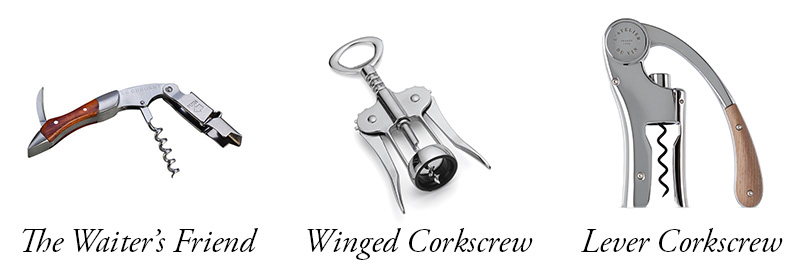 Winged corkscrew – this comes without a foil-slicing blade, but the handle part does double as a bottle-opener if you decide to have a beer too. This time, place the end of the screw in the centre of the cork and screw it right in. Then simply press down on the levers which have risen up with both hands, and watch the cork rise majestically from the bottle.