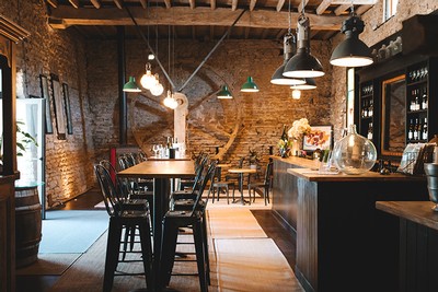 Our tasting facility—think private members’ club crossed with sports bar with a hint of baronial splendour—is based in a sixteenth century former winemaking facility. In fact, it was the foremost winemaking facility in the area, and the source of the wine enjoyed by the Nobles who called Chateau de Cromey (as it was then known) home.