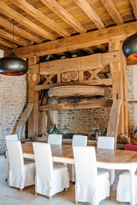 Want to see one of those wine presses? Simply take the short walk across from the tasting room to the main dining room at Cromey and you’ll immediately see and feel the imposing presence of a wine press dating from the early part of the 19th century.
